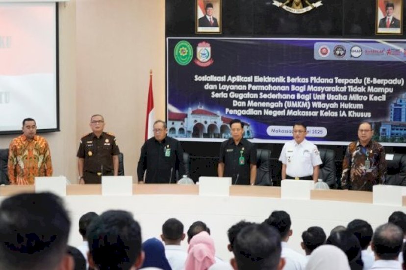 Makassar | Wakil Ketua DPRD Kota Makassar, Andi Suharmika, menghadiri sosialisasi aplikasi Elektronik Berkas Pidana Terpadu (E-Berpadu) serta layanan permohonan hukum bagi masyarakat tidak mampu dan UMKM yang digelar Pengadilan Negeri Makassar Kelas 1A Khusus di Ruang Sipakatau, Balai Kota Makassar, Rabu (14/5/2025).